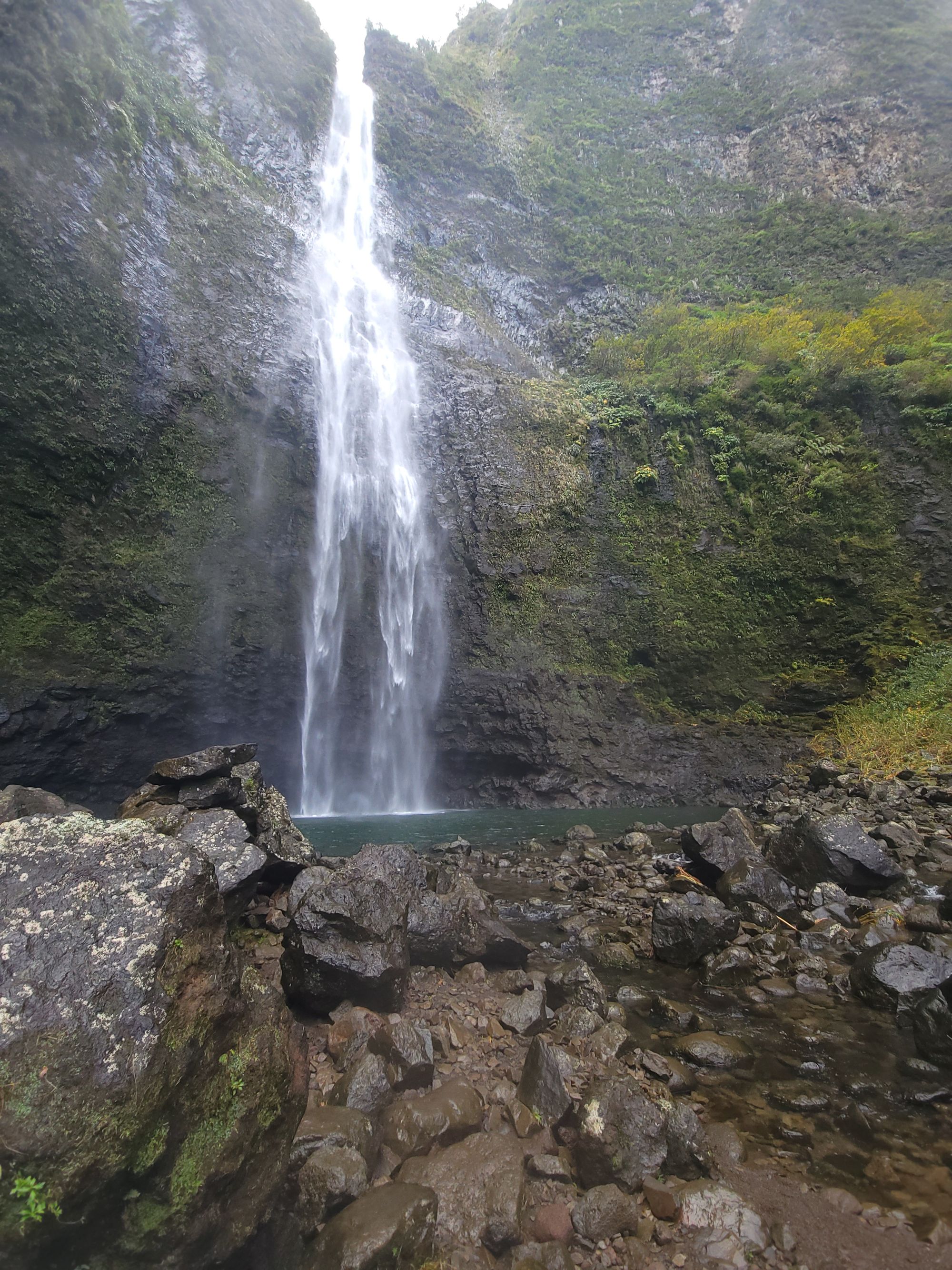 The hike starts at Ke'e Beach and traverses along the Na Pali Coast Trail for 2 miles. There is a stream crossing at the outlet into the ocean at Hanakāpīʻai Beach, which is a beautiful destination of its own! After turning onto the Hanakāpīʻai Falls Trail, there are multiple crossings over the Hanakāpīʻai stream, which make the trail less defined but still pretty easy to follow. There are many scattered patches of bamboo forest and a rock scramble at the end to bring you to the pinnacle of the hike. As we approached the falls, we could feel a sprinkling mist coming from the ~300ft waterfall. Swimming out through the cold water and feeling the weight of the falls was an unforgettable experience!