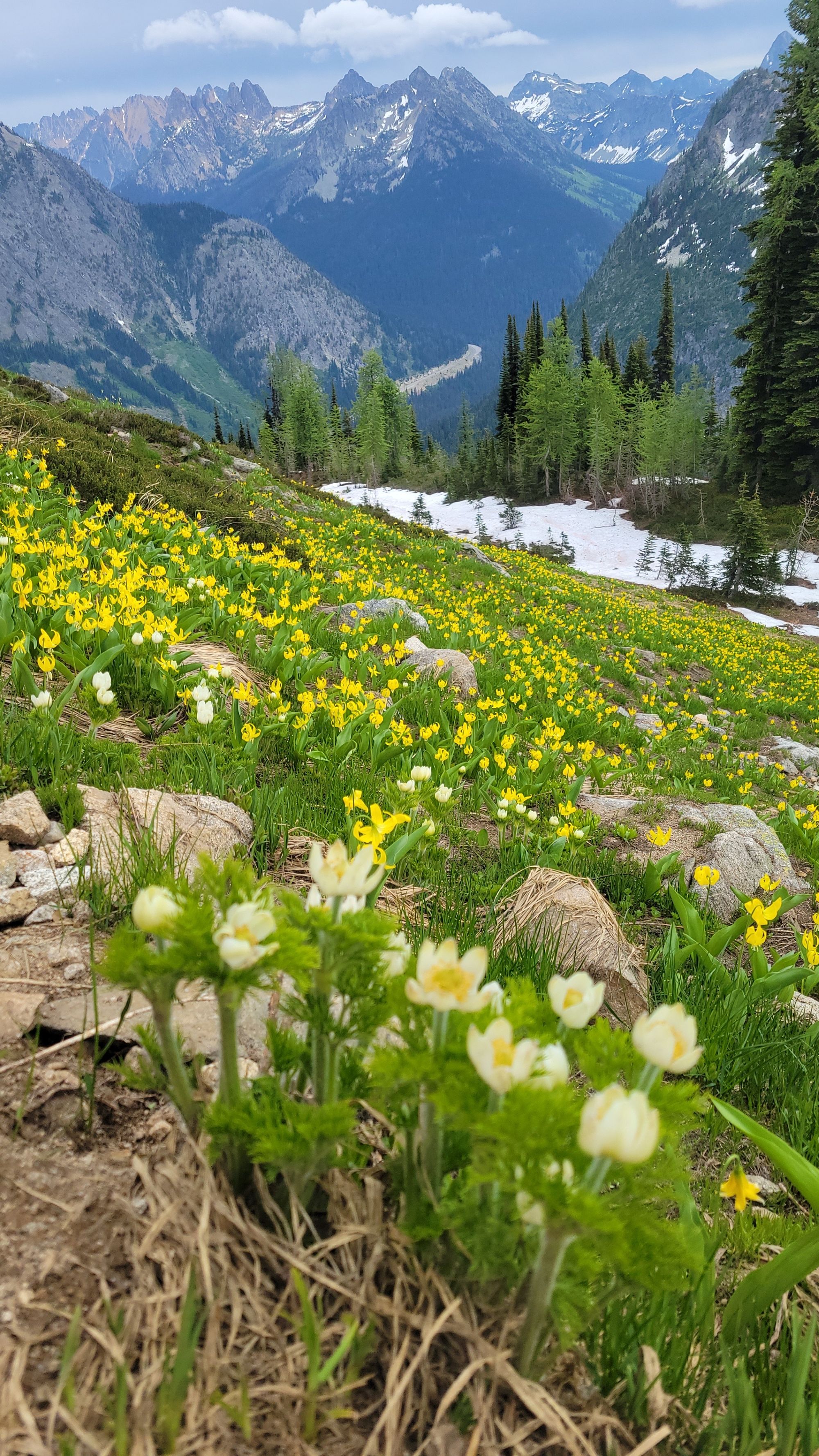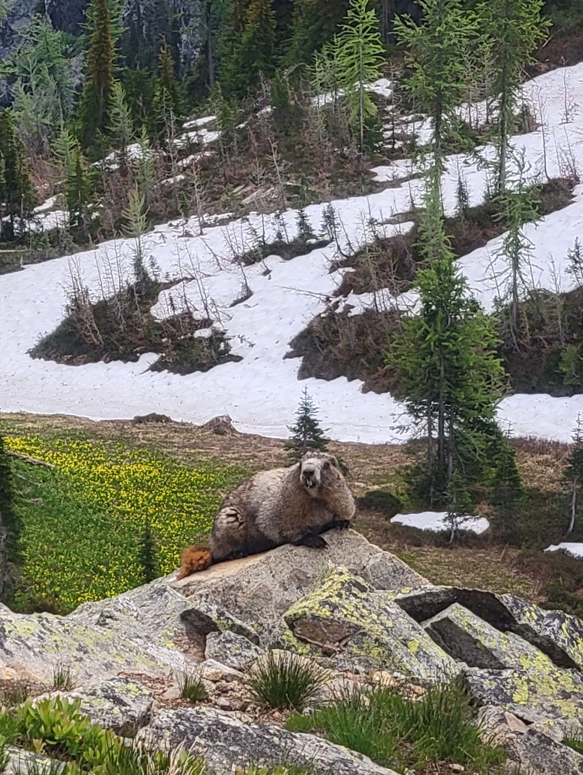 We saw the most incredible panoramic views at the top of Heather-Maple Pass- snow capped mountain peaks, jewel-colored alpine lakes, and wildflower buds as far as the eye can see. We were even treated to a marmot sighting! We did not have microspikes or hiking poles. We both felt that although they may have been helpful, they were not necessary. We hiked this loop counterclockwise and took the additional detour to Lake Ann. Later in the summer, this is undoubtedly a worthy side-quest. However, with large sections of the trail flooded out from recent snow melt, we felt that the views of Lake Ann were more beautiful from above. We hiked this 6.5 mile (plus an additional 1.2 miles to see Lake Ann) in 4 hours and 20 minutes.