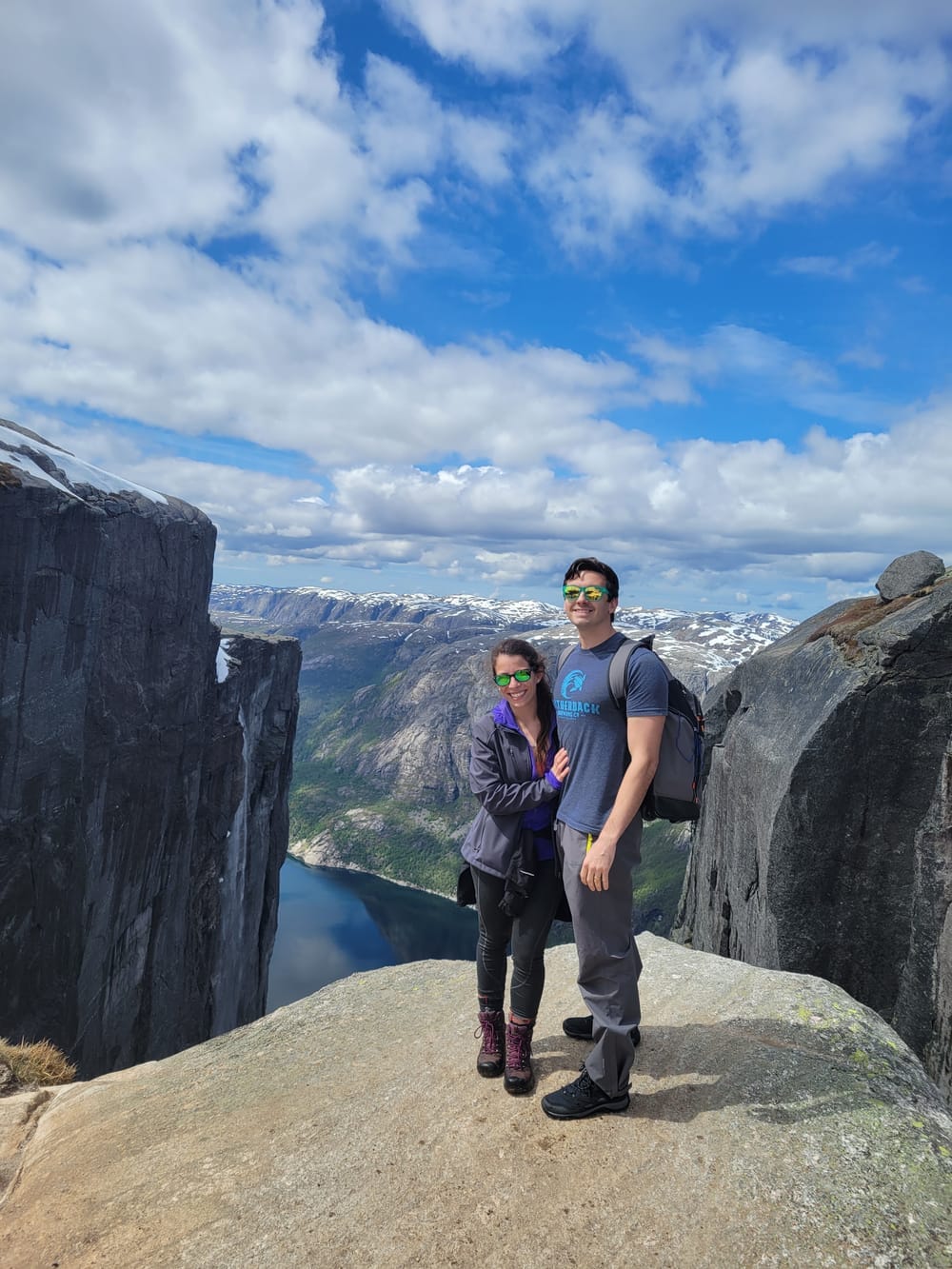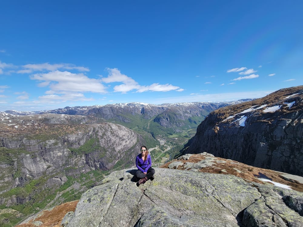 The hike had rope-assisted climbs, 2600ft elevation gain, one-of-a-kind streams and ponds forming from melted snow, & the opportunity to conquer your fear of heights by stepping out onto the Kjeragbolten! The adventure back down the mountain was also special, with large stretches where we could glissade back down.